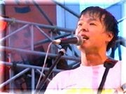 次はお待ちかね,ショコラの登場です.もう,FACTORYお馴染みのショコラさん.97年5月のデビューで,もうすぐ「ハムスター」というタイトルの二枚目のアルバムが8月に出ます.そして今日はゲストという形なのかな,カジくんが入ってのステージもあります.もう,すごい雨ですけど,皆さん応援して下さい.