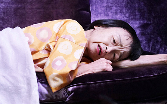 - 2話で杏(小畑乃々)が産まれてから、3話の最初で8年が経過してマツもそれだけ歳をとっているので…。腰が弱くなってコルセットしていたり。“Lの一族”の外見はみんな変わりません。マツも腰は弱いけど、相変わらず能天気です。“大阪ジェーン”もありましたし(笑)。あの白塗りは、すごく時間をかけてメイクさんがやって下さるんですよ。あの時、メイク後に洞(功二)監督にご挨拶したら“オーっ!”って、驚かれたんです(笑)。