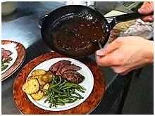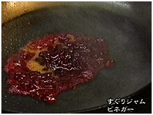 | [2] | すぐりジャム、ワインビネガー、ドミグラスソース、バターをまぜてソースを作る。 |