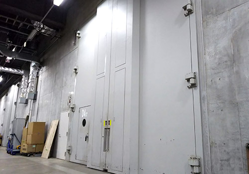 スタジオに隣接する大道具倉庫に