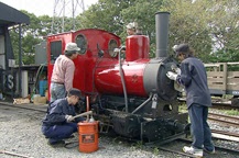 運行日を間近に控え、整備に余念がありません。 皆さん、大の鉄道ファン。 まごころこもった迫力満点な贈り物、 現代に蘇ったSLが力強く走ります。