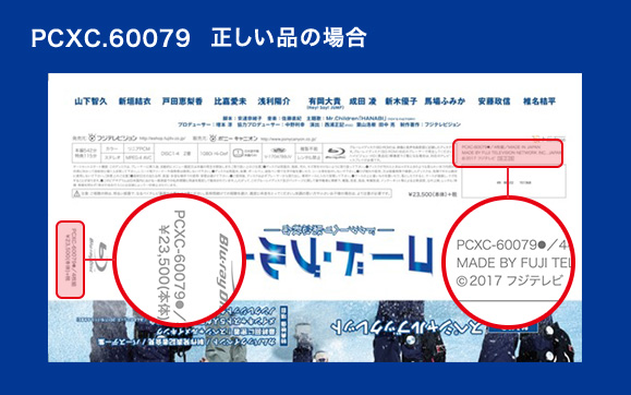 ジャケット帯の背部及び底面品番、PCBC.61763、PCXC.60079の右に●印が印刷されております。不具合品に関しては、●印が無いものとなります。