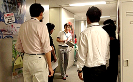 災害発生時に視聴者の皆様のライフラインに関わる重大な情報を提供するテレビ局として、また一企業として、「防災」は重要なテーマです。そのため、フジテレビでは全社的な防災意識の底上げを図るため、年2回(2012年度は9月24日~28日と3月11日~15日)「防災ウイーク」を実施しています。「館内防災もしもツアーズ」と題し、社内の備蓄食糧やAEDの保管場所を確認したり、非常食の試食会を実施。また、「防災プロムナード」では、防災グッズの展示販売や、震災発生時の仙台放送の様子などを動画とパネルで紹介。さらに、「地震ざぶとん」による最新型地震体験や「講習会」なども実施し、社内の防災意識の向上に努めました。また早く正確な災害報道のための、災害即応体制の構築とスタッフのスキルアップをめざし、災害発生を想定した訓練を定期的に実施しています。