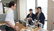 熊本地震と東日本大震災の復興支援につながるようにと、CSRプロジェクトメンバーが中心となり販売会を行いました。熊本の美味しいお菓子や食べ物と、岩手の「遠野まごころネット」の皆さんの協力で岩手の物産もたくさん販売しました。