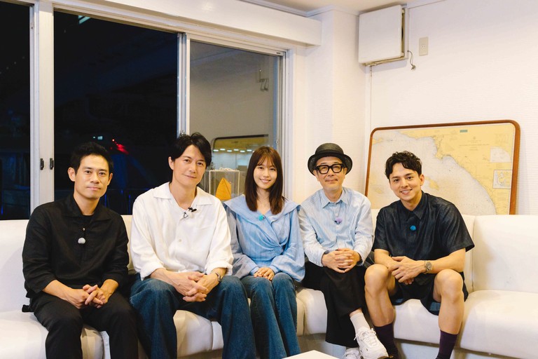左から)リリー・フランキー、伊藤淳史、福山雅治、有村架純、満島真之介/「横浜開港資料館」「たまくすの木」