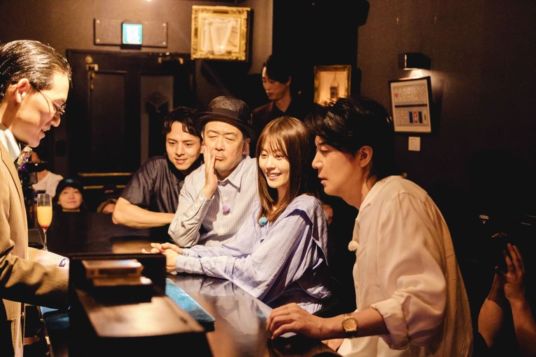 左から)横山俊之介、満島真之介、リリー・フランキー、有村架純、福山雅治/「マジックバーBLACKBOX」