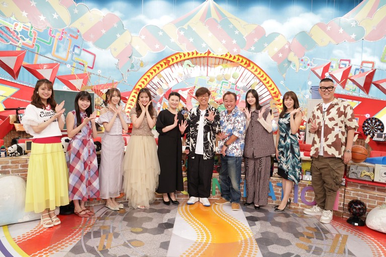 左から)井上清華(フジテレビアナウンサー)、工藤理子(STU48)、弓木奈於(乃木坂46)、藤田ニコル、島崎和歌子、さまぁ~ず(大竹一樹、三村マサカズ)、新川優愛、中川安奈、長谷川忍(シソンヌ)