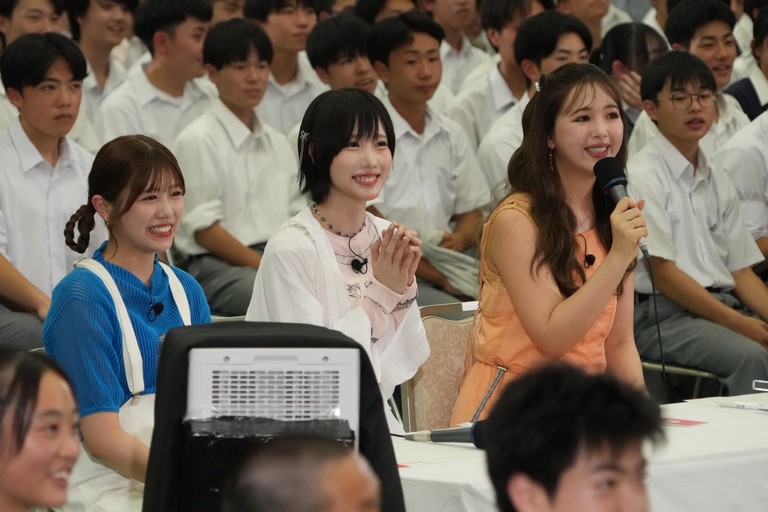 今回の「ハイスクール大喜利」は、茨城県水戸市にある県立水戸桜ノ牧高等学校で開催。事前に生徒たちから提出してもらった回答の中から、粗品がよりすぐりの“おもしろ回答”をチョイスし、カギチームと交互に発表していく。