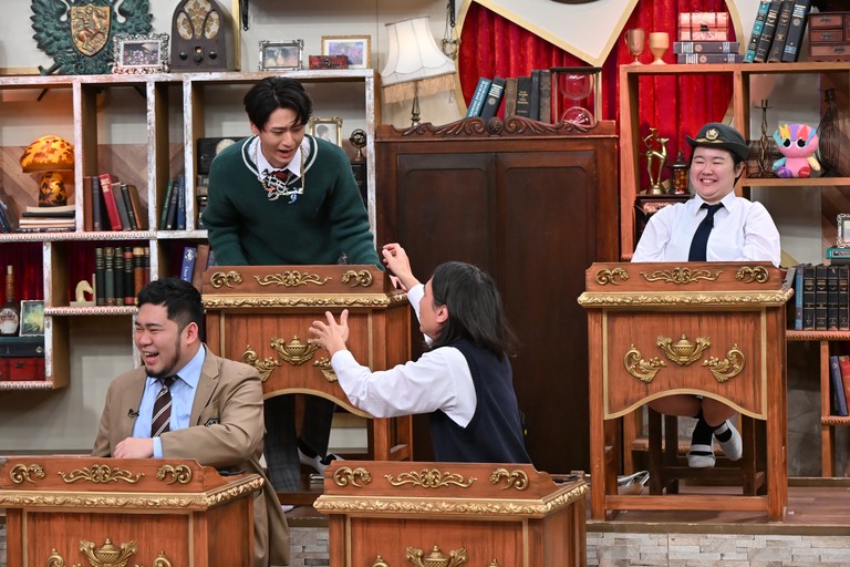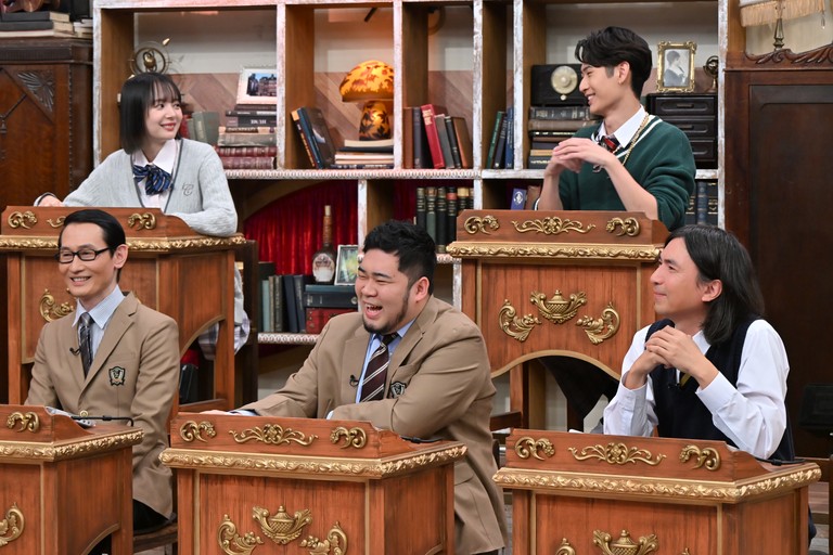 今回タナカ先生に呼び出されたのは、池﨑理人(INI)、岡田紗佳、きくりん、辰巳琢郎、ふかわりょう、松井ケムリ(令和ロマン)の優等生芸能人たち。なお、同志社大学出身の池﨑は番組初参戦だ。そして番組おなじみのメンバー、猪狩蒼弥(KEY TO LIT)、やす子も登場し、優等生芸能人たちと共に優勝争いに参加する。タナカ先生から「めちゃくちゃ賢いんですね!」と聞かれた池﨑が「まぁまぁ…賢いですね(笑)」と答えると、「俺より背も高い時点でイラッときてるのに…同志社ってなんすか!」と不服そうな表情を見せる猪狩から突っ込みが。続けてタナカ先生から「猪狩くんには今日勝てそう?」と聞かれた池﨑が「勝てるんじゃないですかね?」と自信たっぷりに答えると、猪狩も「見せつけてやりますよ!」と強気の姿勢を見せた。京都・奈良の新常識テストと併せて、この2人の勝負の行方にも注目いただきたい。