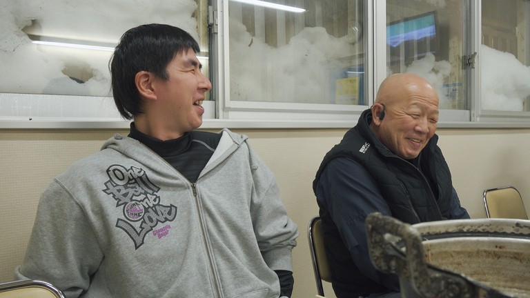 現場をリードするベテラン作業員の瀬戸進さん(右)と唯一の20代作業員・古栃遼さん(左)