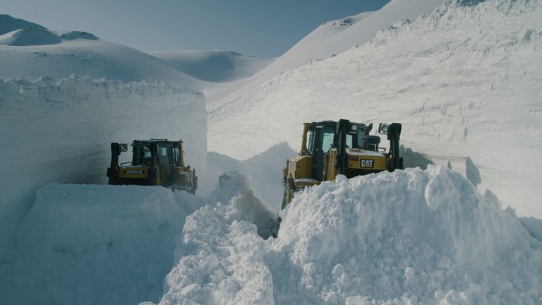 誰もが一度は写真で見たことがあるだろう北アルプスの山岳観光ルート「立山黒部アルペンルート」。高さが20メートルにも及ぶ雪の壁に挟まれた道を毎年4月のルートオープンに向けて、雪にまみれながら除雪する総勢11人の作業員がいる。泊まり込みでの作業は50日。厳寒の山岳地帯。氷結したドアをバーナーで溶かして乗り込む重機を、まるで手足のように操り、分厚い雪面を切り開く。観光客の目を楽しませる、白銀の世界にうねる一本道の雪壁の美的バランスは、アートのそれと変わらない。この道40年の大ベテラン、そしてその職人魂を背中に見ながら20代の新人は思い通りにならない重機と格闘する。立山の透き通った青空に大雪原が浮かび上がる。山岳地帯は天候の変化が激しく、一変して前が見えない猛吹雪に。そんな美しくもあり、厳しくもある大自然の映像と共に、カメラが入らなければ誰も知ることがないだろう、アルペンルートの陰の立役者たちの奮闘ぶりが伝わってくる。ローカル局ならではの地に足の着いた密着取材が結実し、空からの美しい大雪原とかじかむ手で重機を操る作業員という、文字通り「鳥の目と虫の目」でアルペンルートの裏舞台を見事に描き出した。
