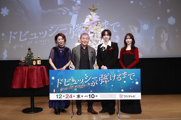 12月24日(水)22時より放送予定の國村隼主演のスペシャルドラマ『ドビュッシーが弾けるまで』の制作発表がフジテレビにて開催された。制作発表には主演の國村隼をはじめ、尾崎匠海、片平なぎさ、加藤史帆が登壇し、MCは西山喜久恵(フジテレビアナウンサー)が務めた。