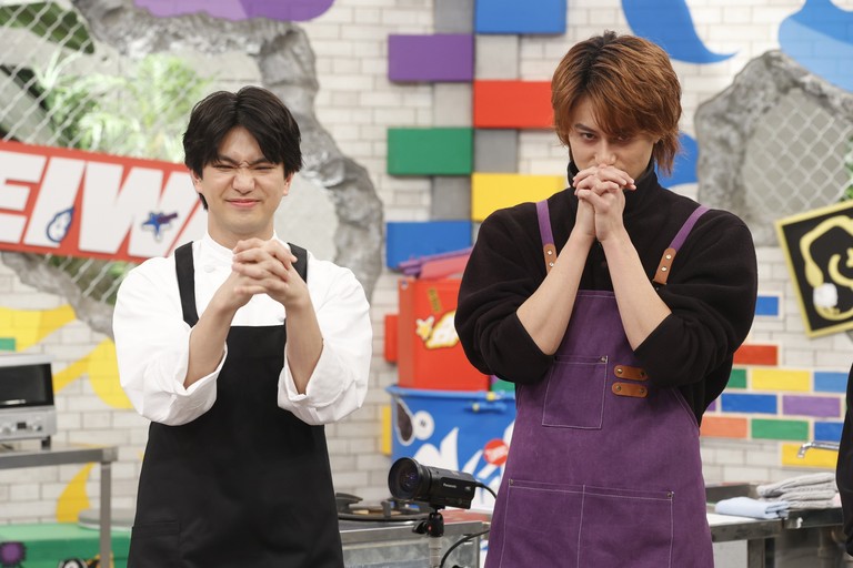 正門の隣で調理の解説を行う末澤に、思わず「誠也くん料理の知識増してるやん!」と正門。これに末澤本人は「末澤も成長してるんで!」と堂々と返答。一方、小島は材料を混ぜるために「シェ~イク!!」と声を上げ、佐野とともに歌い踊りながら大盛り上がり!「楽しいのが一番や料理は」と言う佐野の言葉通り、終始笑顔で楽しそうに作業を進める小島。果たして、1回戦は正門と小島のどちらに軍配があがるのか!?