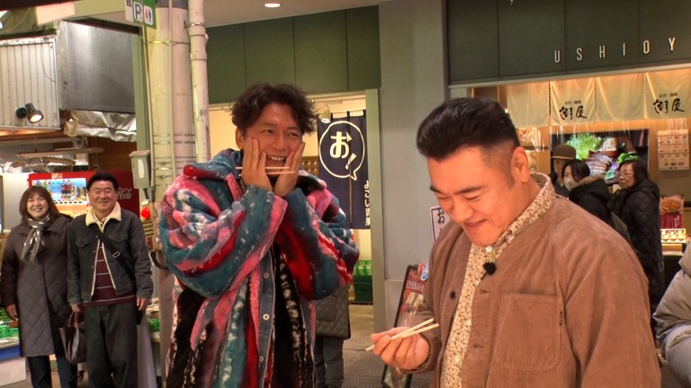 2軒目は、行列ができるカレーコロッケを求め、新鮮なお魚やご当地グルメが楽しめる金沢市民の台所【近江町市場】まで車で移動することに。車内で魚介の話で盛り上がっていると、なぜか柴田のアダ名の話に。そのアダ名に香取が「なんか嫌だ」と言い笑いが起きる。そして、カレーコロッケを販売している、【近江町コロッケ】に到着。それぞれが気になった“コロッケ”と“近江町カレーコロッケ”を食べ、おいしいのはもちろんの事ながらカレーのルーの多さに感動し、作り方の工程を考えるまでに。そしてお腹がいっぱいになった3人が日本三大庭園の一つ【兼六園】を散策していると、柴田の優しさから起きたハプニングに山崎と香取が大爆笑。