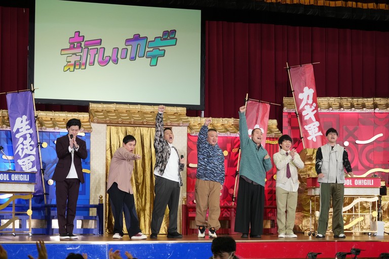 「ハイスクール大喜利」は群馬県の桐生第一高等学校で開催。事前に生徒から寄せられた回答の中から、粗品が厳選した“おもしろ回答”をチョイス。カギチームと交互に発表していく。出題は「この卒業式、何か変だな。なぜ?」「学校内に存在していた開かずの扉。開けたら何があった?」など、想像力を刺激するラインナップ。