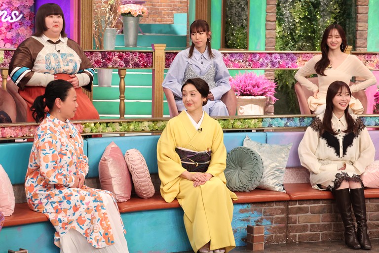 「国際女性デー」のシンボルフラワーにちなみ、華やかなミモザカラーの着物に身を包み、トークィーンズメンバーの大歓声の中登場した草刈は、冒頭から質問攻めに。