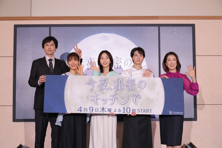 フジテレビで4月9日(木)22時スタートの木曜劇場『今夜、秘密のキッチンで』。その放送に先がけ、フジテレビ湾岸スタジオにて制作発表会見が行われ、主演の木南晴夏をはじめ、高杉真宙、瀧本美織、筒井真理子、中村俊介のメインキャストが登壇した。