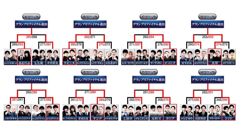 トーナメントを勝ち進んだのは、金属バット、タモンズ、ザ・パンチ、黒帯、シャンプーハット、ヤング、リニア、トットの8組。各試合の終了後には、それぞれ今回の試合の勝因や、グランプリファイナルへ向けての意気込みを語ってくれた(※詳細はコメント欄参照)。