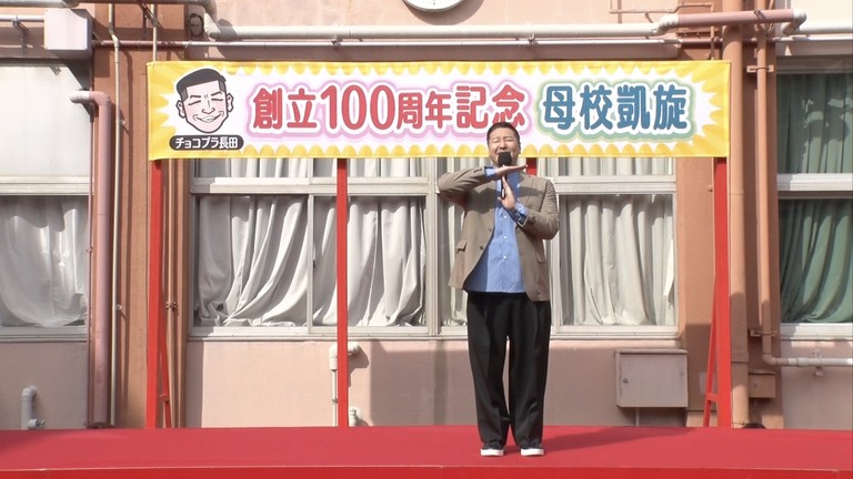 当日、長田は母校の創立100周年記念式典のゲストとして生徒たちの前に登場。あいさつ、記念撮影を淡々と終え、「皆さん頑張ってください。以上…」と言いかけ、「なわけ、あるかい!!」と、サプライズで「学校かくれんぼ」開催を発表!