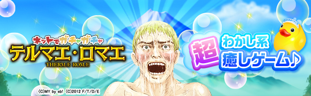 「テルマエ・ロマエ ガチャ」は、プレイヤーが自分の浴場を経営しながら、日本一の風呂屋を目指したり、風呂トモ(お友達)のお風呂に浸かったり、疲れた現代人に向けた超癒し系のソーシャルゲームとなっております。そして、あなたのお風呂にも「ルシウス」がワープ!?してくるかもしれません!もし「ルシウス」が来たら日本の文明を魅せつけてやりましょう!