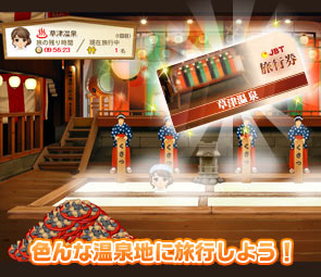 世界交易所で温泉地の旅行券を手に入れよう♪各温泉地ではおみやげやバスボールをゲット!温泉に入っている猿に遭遇することも!?