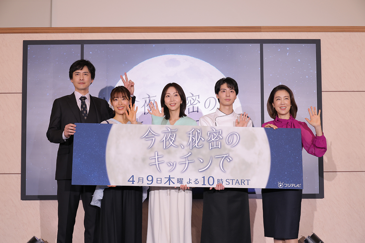 フジテレビ木曜劇場『今夜、秘密のキッチンで』4月9日(木)よる10時放送スタートに先がけ、フジテレビ湾岸スタジオにて制作発表会見が行われ、主演の木南晴夏をはじめ、高杉真宙、瀧本美織、筒井真理子、中村俊介のメインキャストが登壇した。
