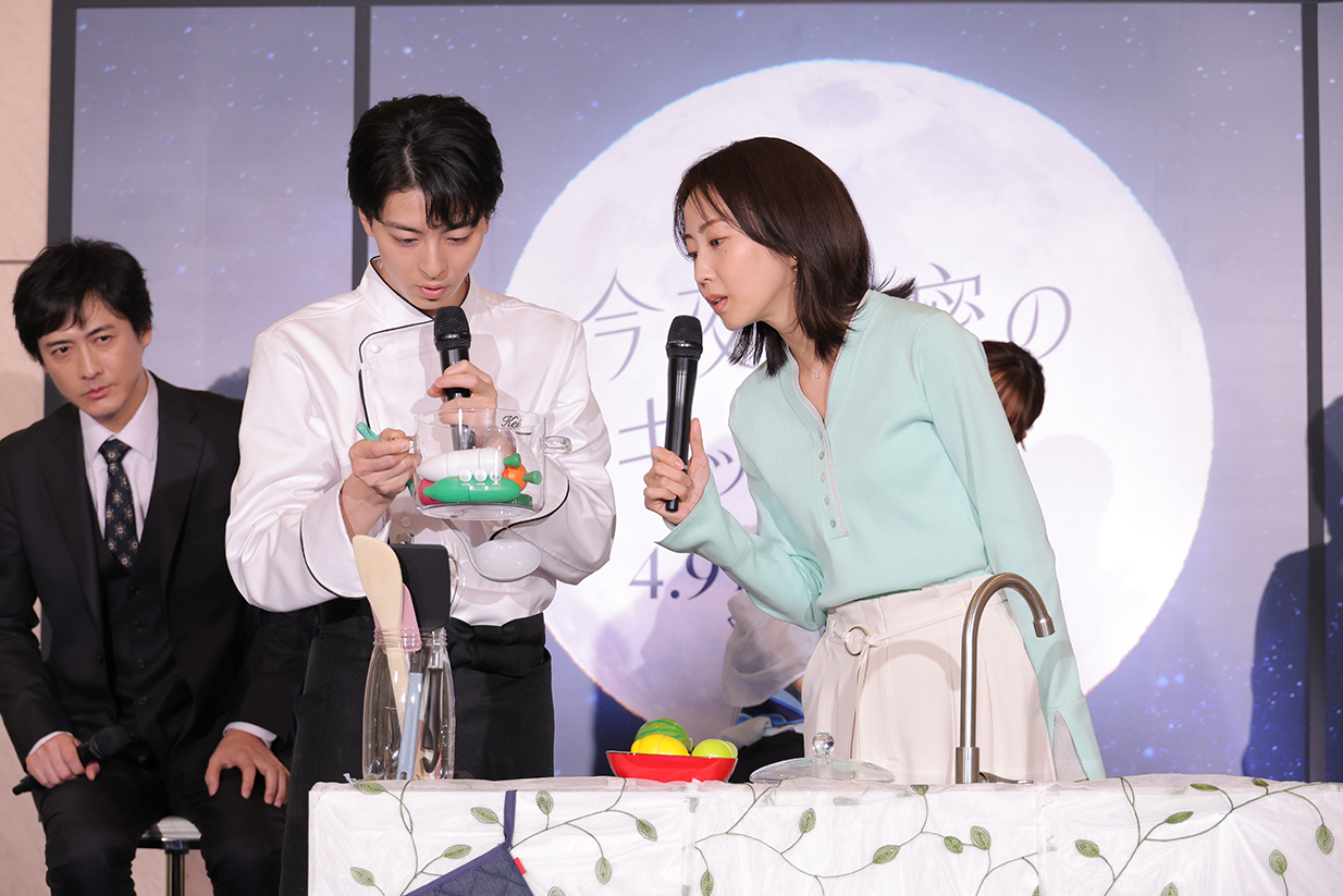 ある“秘密”とはいったい何なのか…?月夜のキッチンで恋に落ちていく大人のファンタジック・ラブストーリーの幕開けに、ますます期待が高まる制作発表となった。