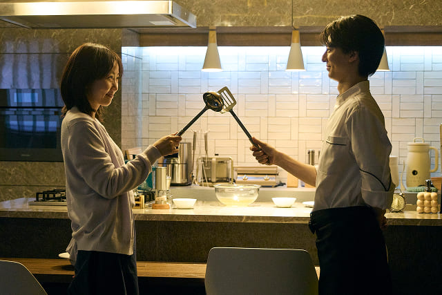 Kei(高杉真宙)が既に死んでいる存在=幽霊と知るあゆみ(木南晴夏)。Keiはなぜか月夜の晩に坪倉家のキッチンにだけ現れるとわかる。
