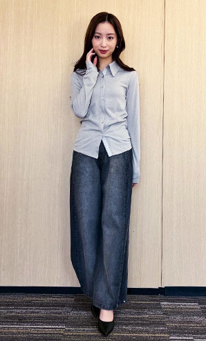 でまとめてすっきりと。上品なきれいめカジュアルスタイルが完成します。