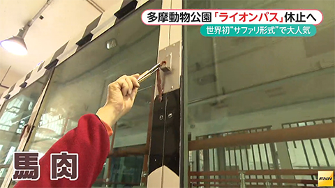 窓は視界を遮らないよう格子を使わず強化ガラス2枚を合わせただけで、バスの外の窓枠には馬肉を仕込んでいた。