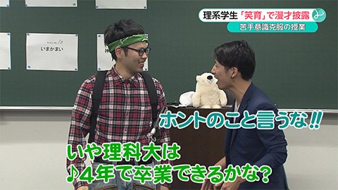 こちらの大学では、“人前で話をする”“コミュニケーションを取るのがちょっと苦手”という理系学生に、お笑い芸人が『笑育(わらいく)』と呼ばれる特別授業を2016年5月からスタート。