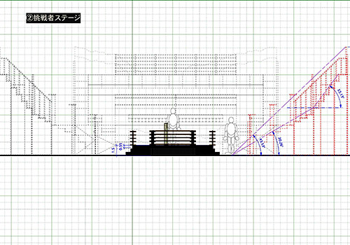 まさに“超逆境”な挑戦者の状態を表現したのが、このスタジアムをイメージしたセット。