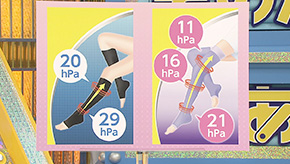 高平先生によると、「筋肉ポンプ」の働きを助ける着圧ソックスを選ぶポイントは、サイズは身長に合わせて選ぶこと。医学的な裏付けのある着圧ソックスを選ぶこと。そして、箱などに明記されている「hPa」(ヘクトパスカル)という単位の数値。これは数字が大きいほど圧力が高いことを示しているのだが、この数値も自身のむくみの程度に合ったものを選ぶのが良く、キツイほど効果が高いわけではないそう。キツ過ぎると静脈が圧迫され、血液の戻りが悪くなることも!