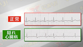 不整脈など一般的な心臓病の心電図は、正常な心臓に比べ波形が大きく乱れ、動悸や息切れなどの自覚症状が現れるが、隠れ心臓病の場合その波形は正常な心臓の心電図とほぼ同じ。大きな乱れもないため、ほとんど自覚症状がないという。