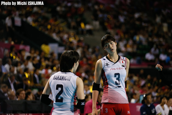 ●全日本・中道瞳(左)&木村沙織 (レンズ 140mm/絞りf 2.8/シャッター速度1/1000秒)