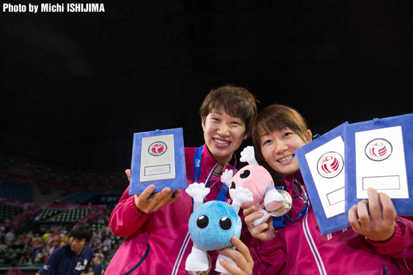 ●ベストスパイカー・長岡望悠(左)&ベストリベロ、MVP・佐野優子 (レンズ 24mm/絞りf 4/シャッター速度1/250秒)