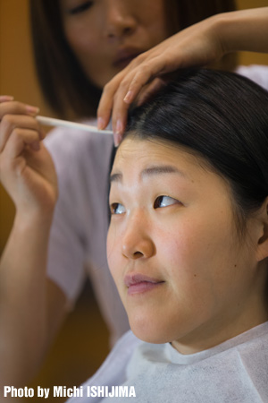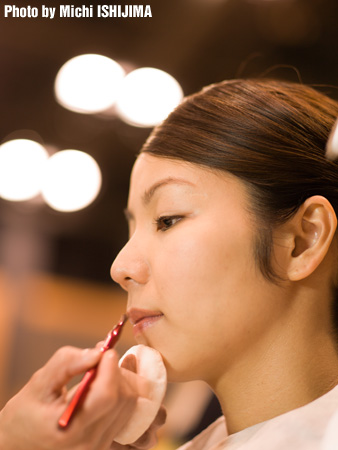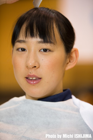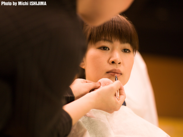 撮影、会見に先立ち資生堂のビューティスタッフによる化粧が始まる。