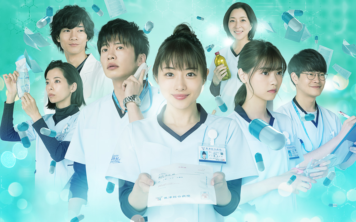 ビジュアルを手がけたのはアートディレクターの高尾裕司さん(環七グラフィック)。「アイスグリーンは再現の難しい色調なので苦労しましたが、爽やかで清潔感のあるポスターに仕上がったと思います」とコメント。また、今作の見どころの一つである薬剤部メンバーの“チーム感”も表現されていて、葵みどり(石原さとみ)を中心に部長の販田聡子(真矢ミキ) 、副部長の瀬野章吾(田中圭)、刈谷奈緒子(桜井ユキ)、羽倉龍之介(井之脇海)、そして新人の相原くるみ(西野七瀬)が結束して働く様子が描かれています。ひとり、薬剤部メンバーではない小野塚綾(清原翔)は少し離れた位置からみどりたちに優しいまなざしを送ります。小野塚は一体何者なのか?小野塚が薬剤部メンバーとどのように接していくのか、放送にご注目ください。