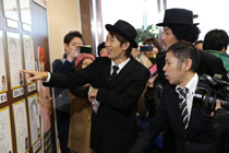 休日で賑わうお客さん、そして極寒の中、2Fテラスのめちゃイケ写真パネルに来場の証しとして無事にサインをすることができるのか!?